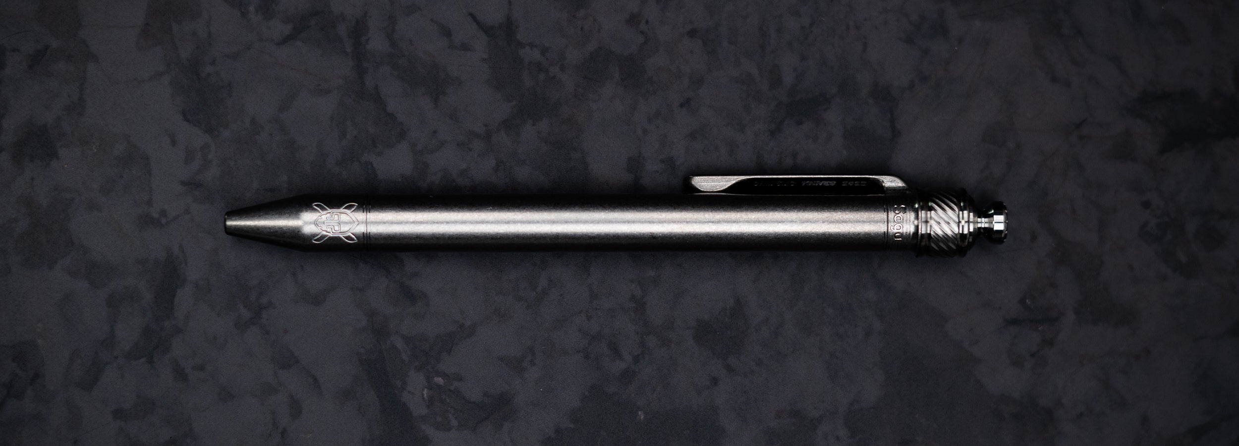 Nearly every component is meticulously manufactured by our Canadian team, with only the 2 springs, 3 ceramic balls, and the ink refill being made by expert suppliers.