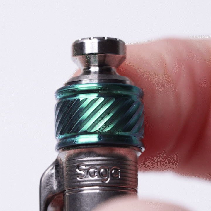 The mechanism on the Saga is a masterpiece of engineering and machining. Made in house on our Swiss lathe, this mechanism provides the user with a smooth locking feel, a firm tactile click, and a perfect haptic experience for a lifetime.